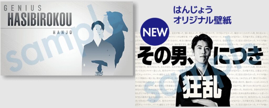 オリジナル壁紙は、袴を着用したはんじょうとシンプルな背景を合わせたイラストを採用しています。