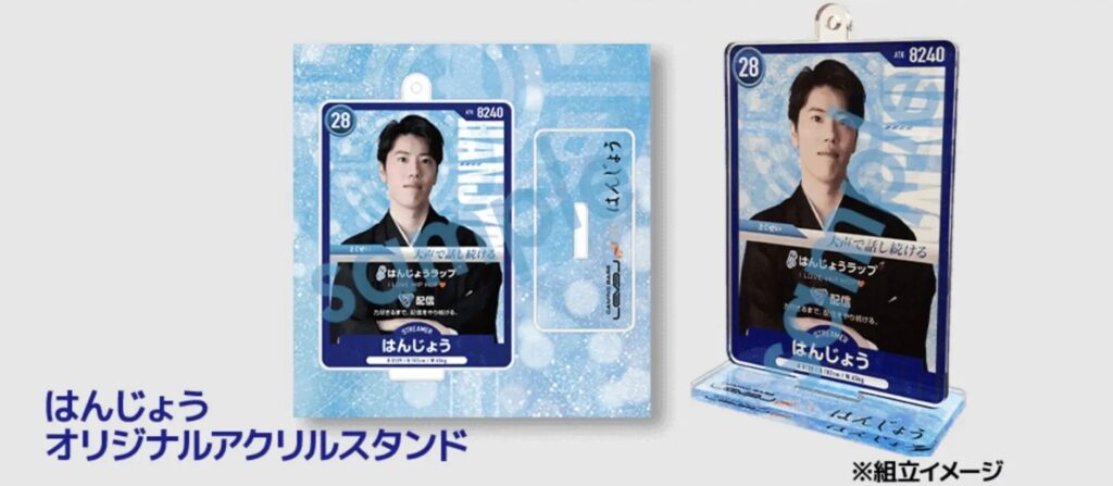 オリジナルアクリルスタンドは、トレーディングカード風の見た目を採用したユニークなデザインです。