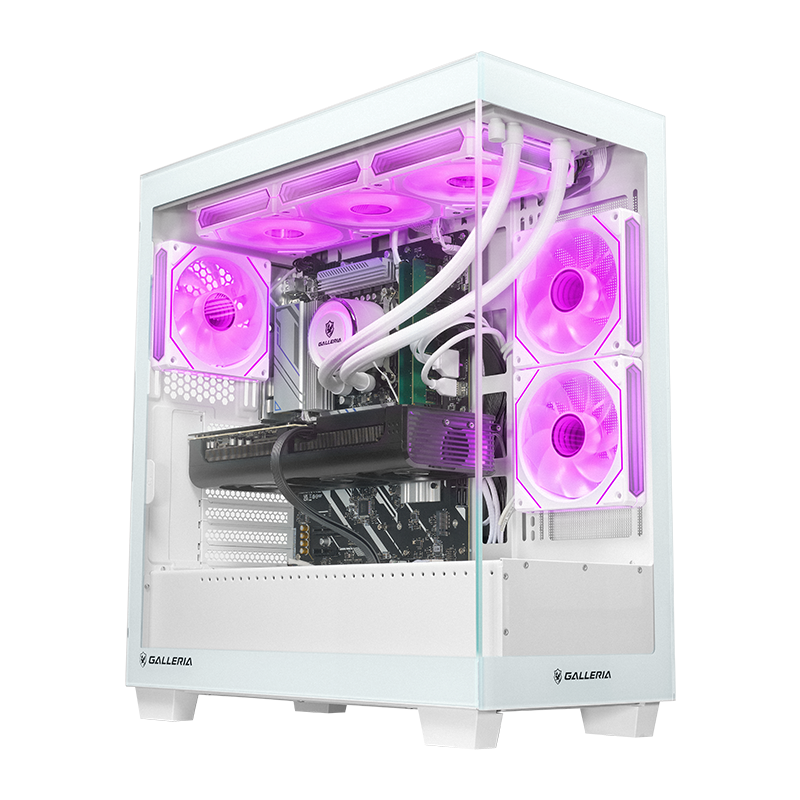 デスクトップモデルは、ガラスサイドパネルを採用しているので、パープルの幻想的な光がデスク周りを照らす仕様です。