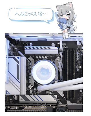 また、LEDカラーはNachonekoのイメージカラーであるホワイトが設定されているほか、水冷ヘッドにはNachonekoの相棒である「へんにゃの」もデザインされています。