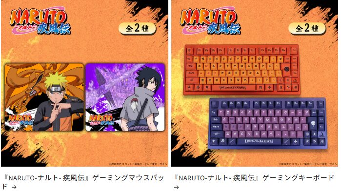 ナルト版とサスケ版が用意されており、PCと一緒に購入すると、テーブル周りをナルトの世界観に染められます。
