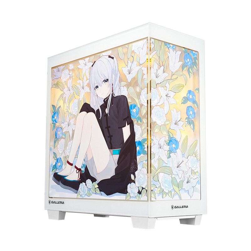 猫麦とろろのコラボPCには、花に囲まれている猫麦とろろを描いた、オリジナルデザインのPCケースを採用しています。