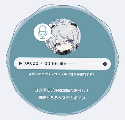 オリジナルシステムボイスはコラボ限定で録り下ろしされており、配信では聞けない猫麦とろろの声をいつでも聞けるのが嬉しいポイントです。