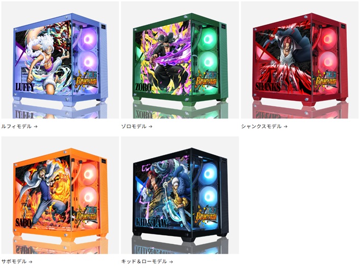 ONE PIECEコラボPCのモデルは、ベースカスタムが8種類用意されています。