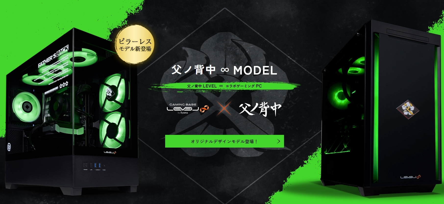 プロゲーミングストリーマー集団「父ノ背中」と、ゲーミングPCブランドの「LEVEL∞」のコラボPCが発売されています。