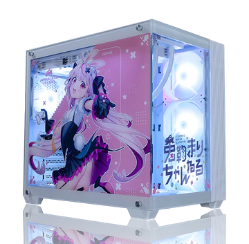 書き下ろしイラストをPCケースに施し、バックパネルにもチャンネルロゴを配置しているため、兎鞠まりの世界観が全面に押し出されているのが特徴です。